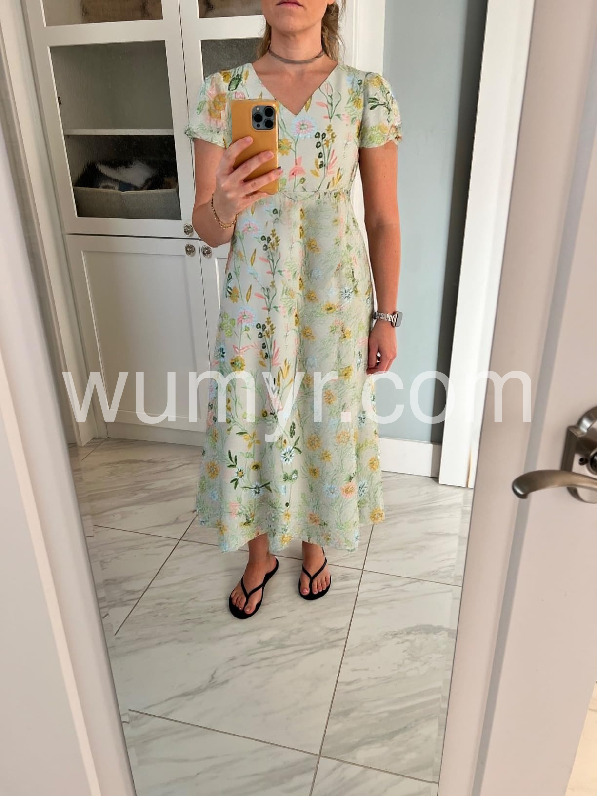 Yes! It runs true to the garment size chart please choose your size based on your measurements.This Distinctive V-Neck Short Sleeve Maxi Dress features a unique v-neck design and short sleeves, giving it a timeless and elegant appearance. Its comfortable and flowy fit makes it perfect for any occasion, while its high-quality material ensures durability. Upgrade your wardrobe with this stylish and functional dress.